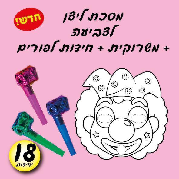 ערכת יצירה ומשחק-מסכת ליצן לצביעה 18 יח